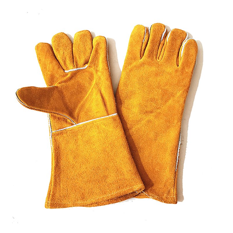Golden cow split leather welding gloves,